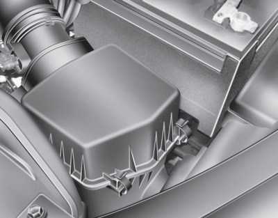 1. Ослабьте зажимы крепления крышки воздушного фильтра и откройте крышку.