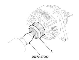 Снимите шкив OAD (обгонная муфта генератора) (A) с помощью специального инструмента.