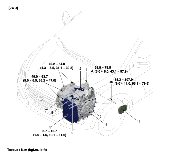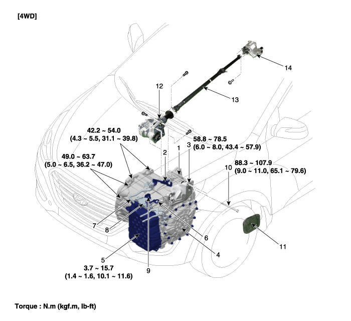 Hyundai Tucson (LM) 2010-2015 Руководство по ремонту / Автоматическая трансмиссия / Автоматическая трансмиссия / Компоненты автоматической коробки передач и расположение компонентов