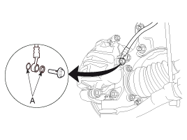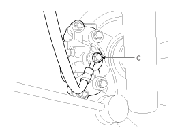 Отсоедините тормозной шланг от тормозного суппорта, ослабив болт (С).