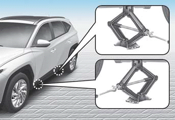 8. Вставьте ручку домкрата в домкрат. и поверните его по часовой стрелке, подняв автомобиль, пока шина не оторвется от земли. Убедитесь, что автомобиль устойчив на Джек.