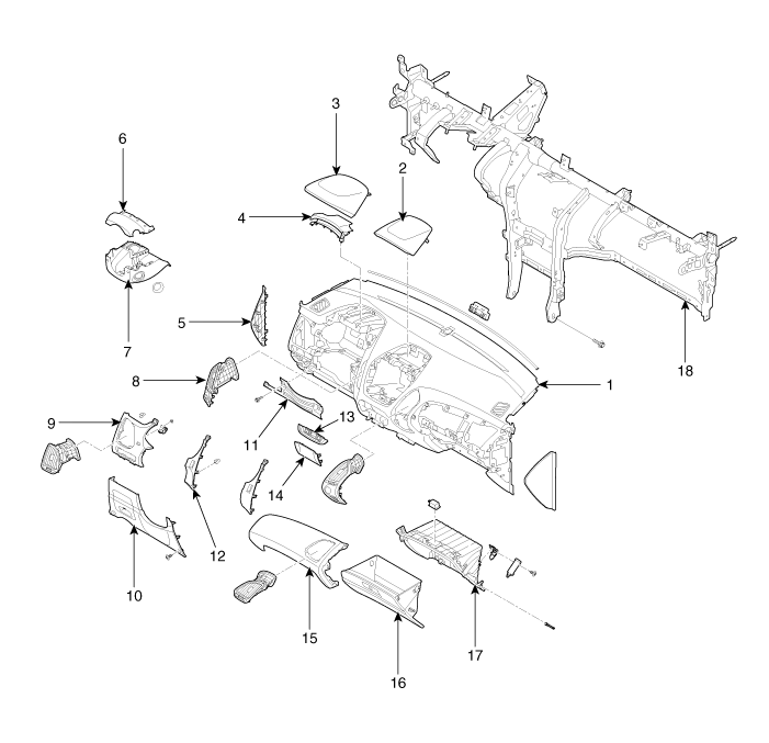 Hyundai Tucson: Компоненты салона / Crash Pad и расположение компонентов