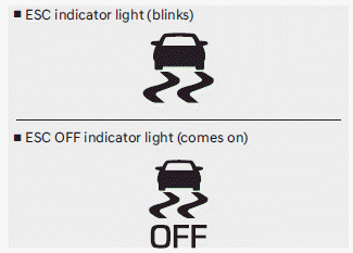 Когда ключ зажигания находится в положении Положение ON, индикатор ESC загорается, затем гаснет, если ESC система работает нормально.