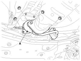 Отсоедините разъем переднего кислородного датчика (А), а затем снимите его с кронштейна.