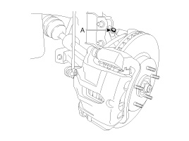 Снимите болт крепления кронштейна тормозного шланга (А).