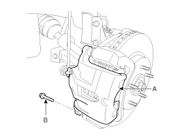 Ослабьте болт направляющей штанги (В) и поверните суппорт (А) вверх, чтобы он не мешал.