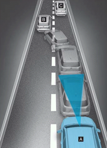 Идущее впереди транспортное средство обнаруживается с опозданием.