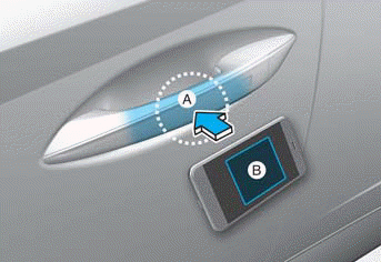 Поместите цифровой ключ (смартфон ключ) Антенна NFC возле дверной ручки панель аутентификации водителя или дверь пассажира примерно на 2 секунды.
