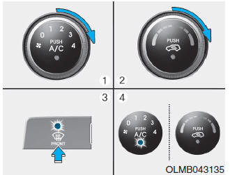 4. Наружный (свежий) воздух и кондиционер будут выбраны автоматически.