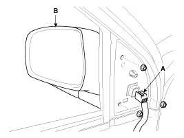 Отсоединив разъем (А), снимите наружное зеркало заднего вида (В).