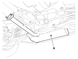 Отсоедините разъем переднего кислородного датчика (А), а затем снимите его с кронштейна.