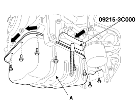 Установите масляный поддон (А). Равномерно затяните болты в несколько проходов.