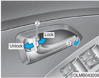 При нажатии на заднюю часть (2) переключателя все двери автомобиля разблокируются.