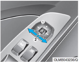 Нажмите кнопку L (со стороны водителя) или R (со стороны пассажира) (1), чтобы выбрать зеркало заднего вида, которое вы хотите настроить.