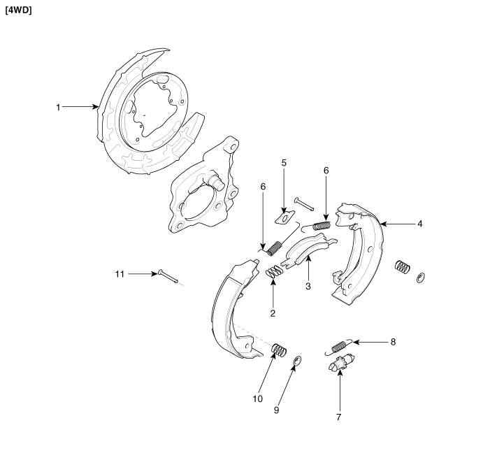 Hyundai Tucson: стояночная тормозная система / расположение компонентов стояночного тормоза в сборе