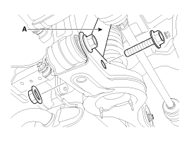 Ослабьте болт и гайку, а затем отсоедините амортизатор (А) от задней оси.