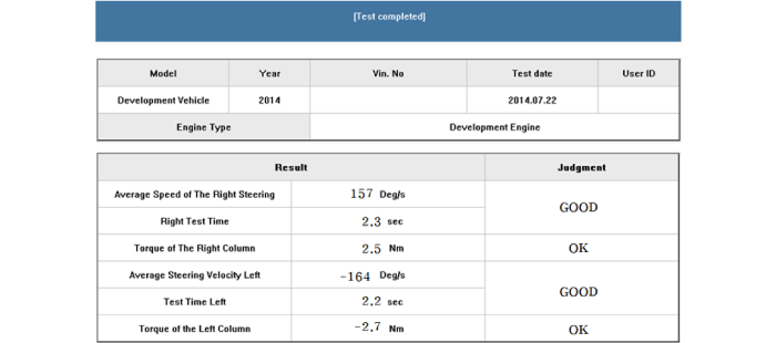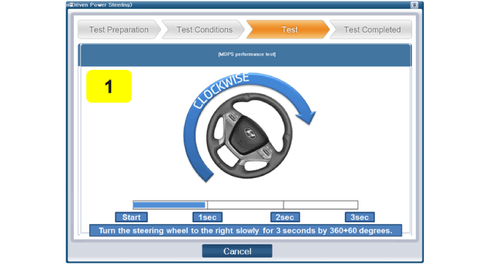 GDS оценивает нормальное/ненормальное состояние MDPS, вычисляя Крутящий момент двигателя MDPS, создаваемый при повороте рулевого колеса влево и вправо. вправо на 360° за 3 секунды.