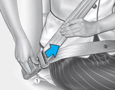 Вытяните ремень безопасности из натяжителя и вставьте металлический язычок в пряжку. Будет слышен щелчок, когда язычок зафиксируется в пряжке.