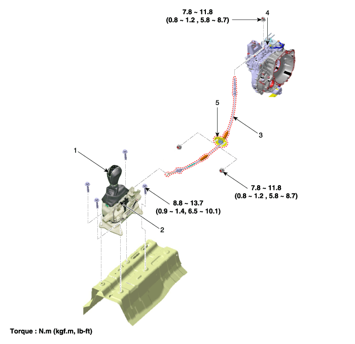 2. Рычаг переключения передач в сборе 3. Трос переключения |