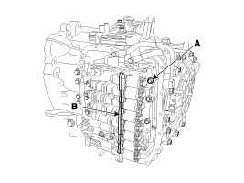 Отсоедините разъем электромагнитного клапана (В) и датчик температуры масла (А) от корпуса клапана.