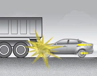• Подушки безопасности могут не раскрыться, если автомобиль сталкивается с такими объектами, как утилита столбы или деревья, где точка воздействие сосредоточено в одной области и полная сила удара не подается на датчики.
