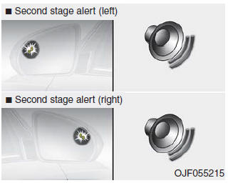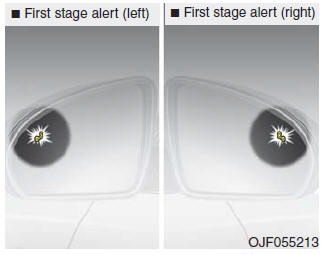 Kia Cadenza: Предупреждающее сообщение и управление / Предупреждение о столкновении в слепых зонах