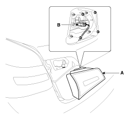 Ослабив гайки крепления, отсоедините разъем заднего комбинированного фонаря (В).