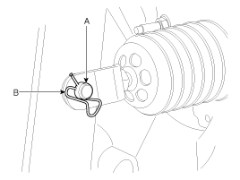 Снимите стопорный штифт (А) и штифт с плоской головкой (В).