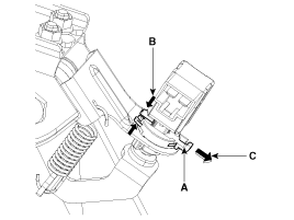Освободите стопорную пластину, осторожно надавив на крюки (В), а затем потяните стопорную пластину (А), как показано стрелкой (С).