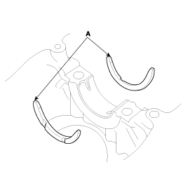 Установите 2 упорных подшипника (А) под шейку № 3 блока цилиндров так, чтобы масляные канавки были обращены наружу.