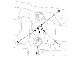 Установите правый впускной распредвал (А) и выпускной распредвал (В).
