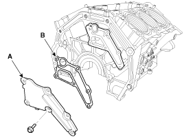 Установите крышку маслосливного отверстия (А) с новой прокладкой (В).