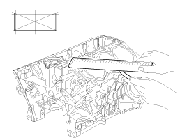Используя прецизионную линейку и щуп, измерьте поверхность, контактирующую с прокладкой головки цилиндров, на деформацию.