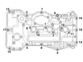 Установите болты левой крышки головки блока цилиндров следующим образом.