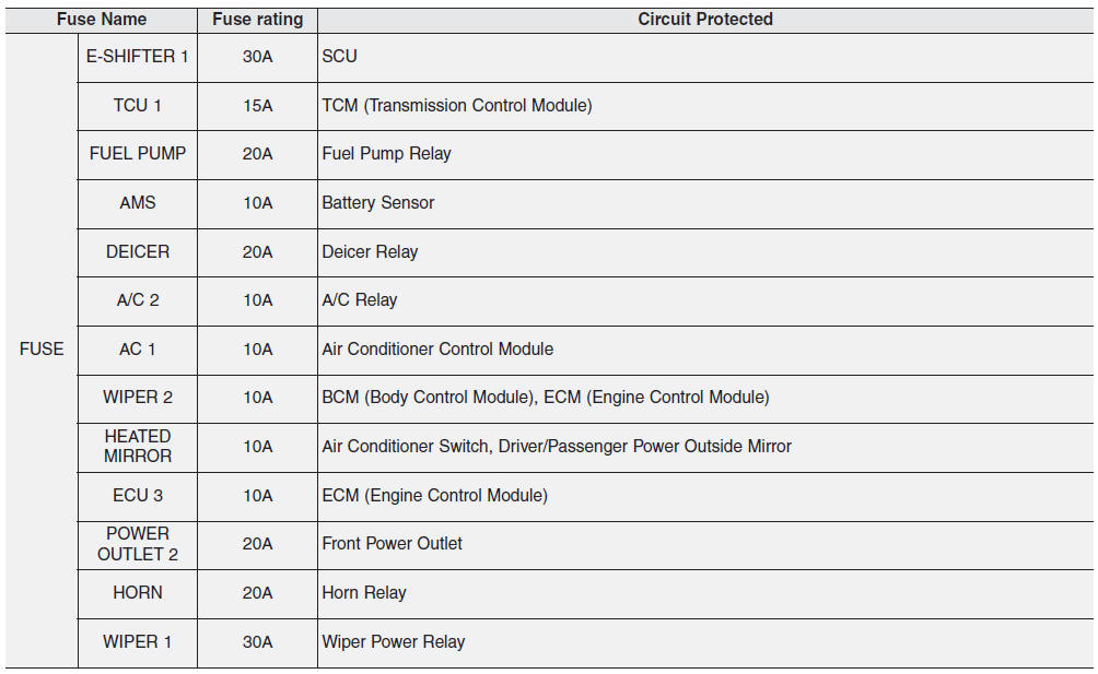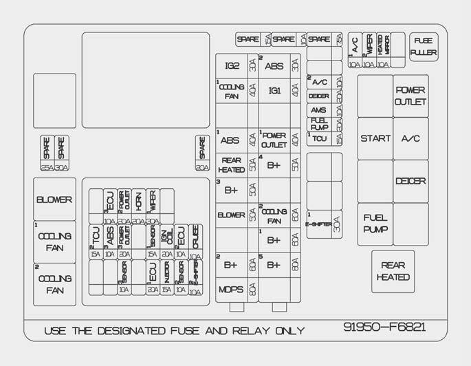 Kia Cadenza: Описание панели предохранителей/реле / Панель предохранителей в моторном отсеке
