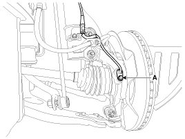 Выверните болт крепления датчика скорости переднего колеса (А).