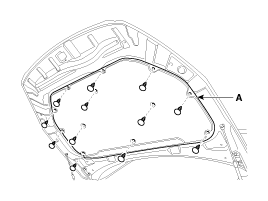 Используя съемник зажимов, отсоедините зажимы и снимите изоляционную прокладку капота (А).