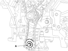 Снимите болт (А) и затем отделите цепь со звездочкой от масляного насоса.