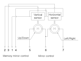 Подайте напряжение батареи на каждую клемму, как показано в таблице, и убедитесь, что зеркало работает правильно.