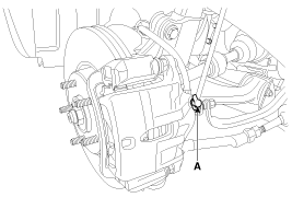 Ослабьте винт для прокачки правого заднего тормоза (А), чтобы воздух вышел из системы. Затем надежно затяните прокачной винт.