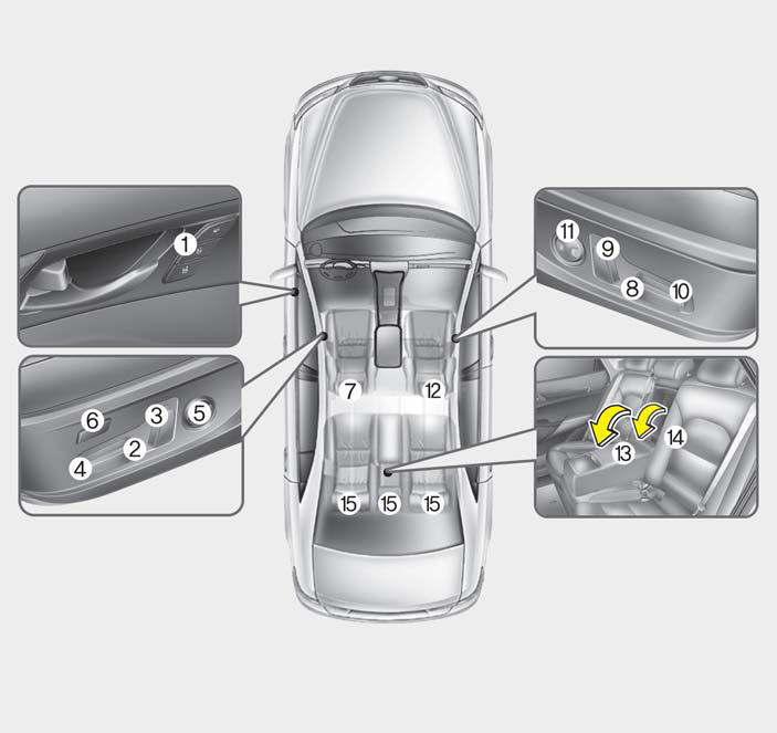 После регулировки сиденья с ручным управлением всегда проверяйте, что он заблокирован перенос веса на перед и назад. Внезапно или неожиданно движение водителя сиденье может привести к потере управление транспортным средством.