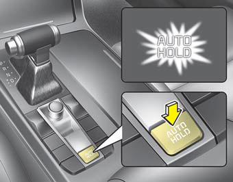 2. Когда вы полностью останавливаете автомобиль нажатием на тормоз педаль, индикатор AUTO HOLD меняется с белого на зеленый.