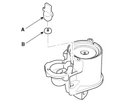 Снимите уплотнение рычага (А) и пластину рычага (В).