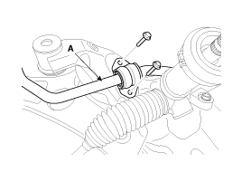 Ослабьте болт (А) и отсоедините узел универсального шарнира от шестерни рулевого механизма.
