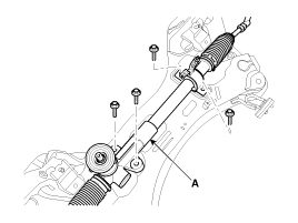 Снимите рулевой механизм (А) с переднего подрамника, ослабив крепежные болты.