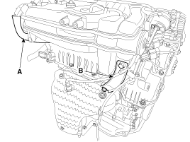 Отсоедините шланг PCSV (A) и водяные шланги корпуса дроссельной заслонки (B).