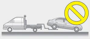 Если какое-либо из нагруженных колес или подвеска компоненты повреждены или автомобиль буксируется с помощью передние колеса на земле, используйте буксировочная тележка под передние колеса. При буксировке коммерческим эвакуатора и колесных тележек нет используется, передняя часть автомобиля должна всегда быть поднятым, а не сзади.
