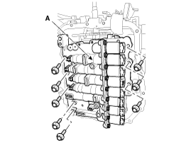 Снимите сливную пробку ATF (A), дайте жидкости стечь, а затем снова установите сливную пробку.