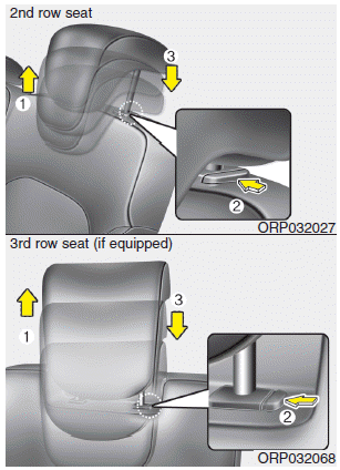 Чтобы переустановить подголовник, вставьте стержни подголовника (3) в отверстия, пока ...