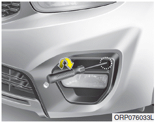 При нормальном состоянии передних противотуманных фар и аккумулятора направьте передние противотуманные фары. Чтобы направить переднюю противотуманную фару вверх или вниз, поверните ручку по часовой стрелке или против часовой стрелки.